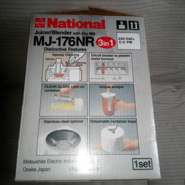Made In Japan National Juicer Blender With Dry Mill Mj 176nr 3 In1 Never Use 48 Mark 98711120 Low Noise Home Appliances On Carousell