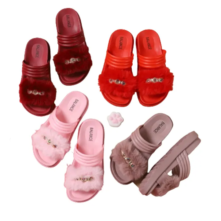 Sandal Anak Sandal Selop Jelly Ban Dua Aksen Bulu 1604 92 Warna Dikirim Random Lazada Indonesia