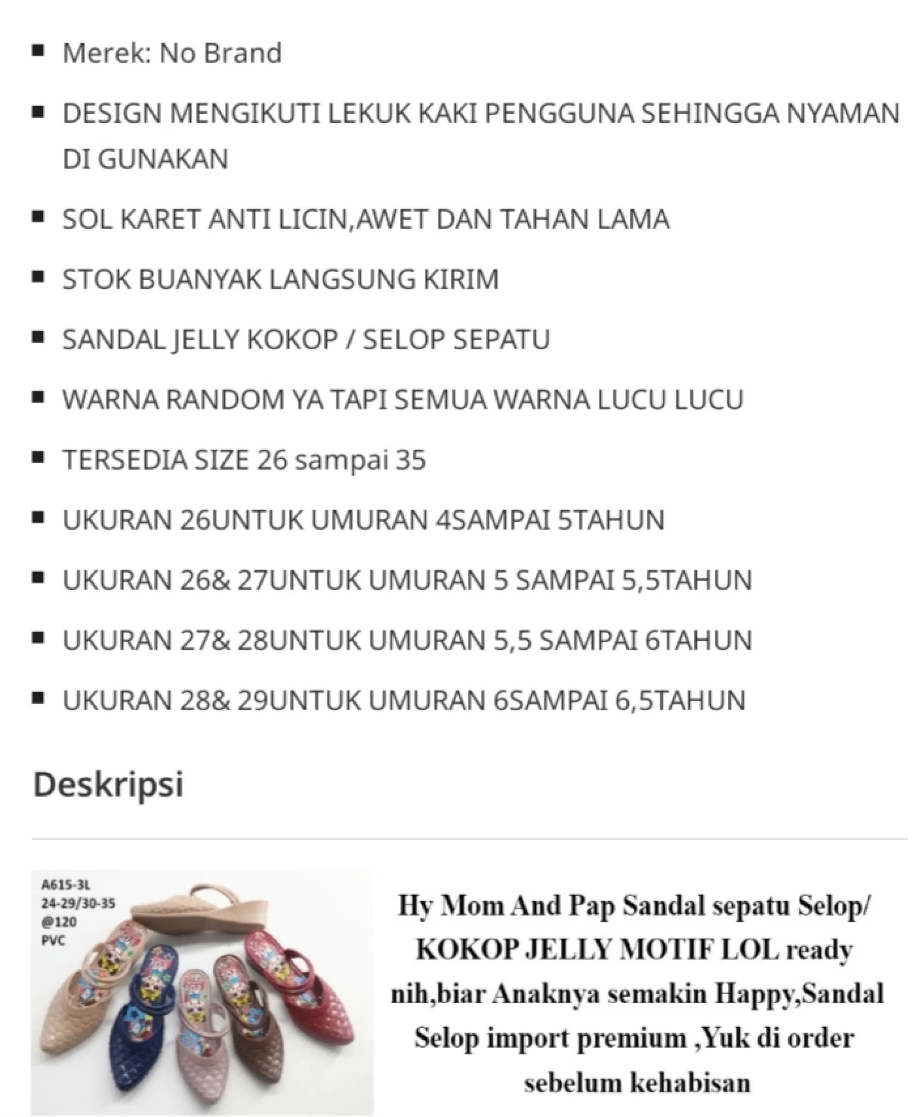 Jual Sandal Selop Karet Anak Perempuan Lucu Sandal Kokop Warna Random 31 Kota Bekasi Toko Top Shoes Tokopedia