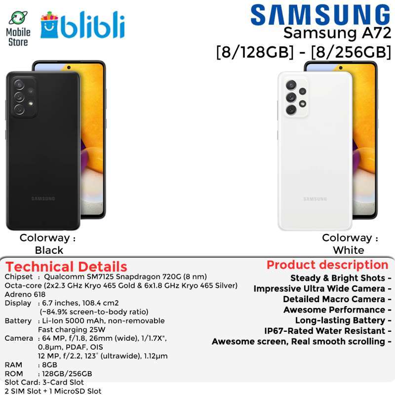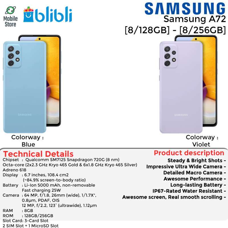 Jual Samsung Galaxy A72 8 256gb Garansi Resmi Online April 2021 Blibli