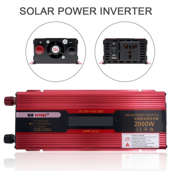 2000w Car Power Inverter Dc 24v To Ac 110v Solar Power Inverter Lcd Display Red Vehicle Electronics Gps Consumer Electronics