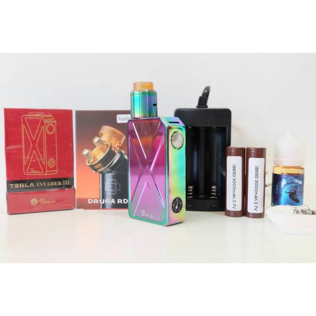 Paket Ngebul Terlaris Mod Tesla Invader 3 240w Rainbow Rda Druga Lg Charger Liquid Vape Shopee Indonesia