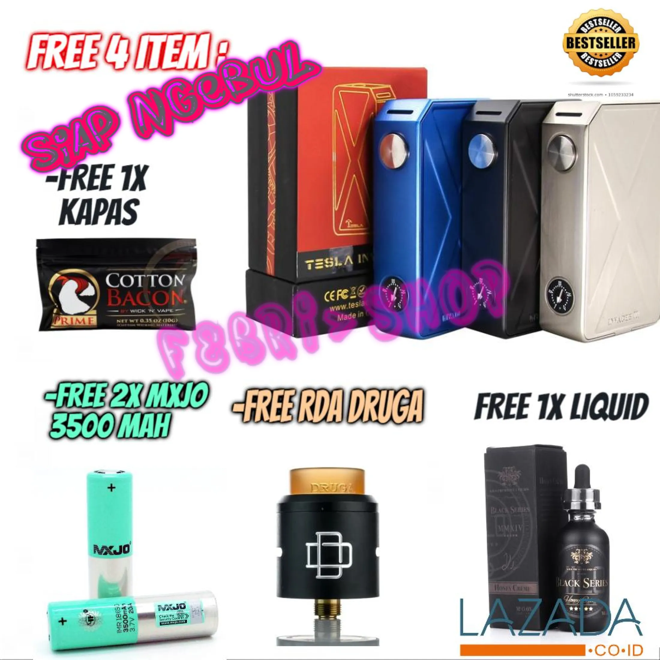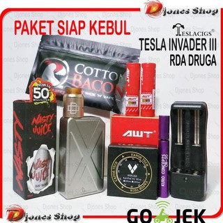 Paket Hemat Ngebul Mod Tesla Invader 3 Authen Rda Druga Lg Hg2 Charger Liquid Kapas Coil Shopee Indonesia