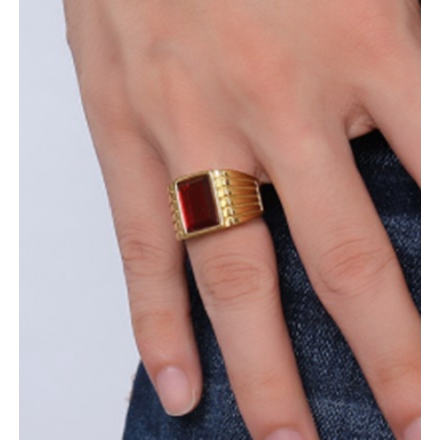 Cincin Vintage Model Ruby Besar Warna Emas Gaya Punk Keren Untuk Pria Shopee Indonesia